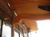 そこで、それを接ぎではなく、カナダヒバ材一本木からそれを切り出すことができないか、台湾の木材業者に3回足を運んで見つけ出したのが、樹齢千年は越える大木2本から取ったこの破風板4枚です。しかも節なしの化粧板です。2月4~5日にかけて、宮大工の手鉋で剣のように研がれた美しい破風板が設置されました。